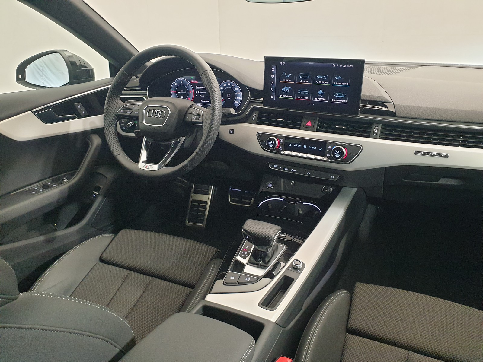 La soluzione tecnologica adottata da Audi integra una batteria compatta agli ioni di litio e un alternatore-starter azionato a cinghia (RSG), collegato all’albero motore: nei motori a 6 cilindri la rete impiegata è a 48 Volt, mentre con i 4 cilindri il sistema è su base 12 Volt. Tra i 55 e i 160 km/h, quando il conducente rilascia il pedale dell’acceleratore, l’auto può veleggiare, ovvero avanzare per inerzia con il motore spento a zero emissioni per un tempo ridotto. Non appena il guidatore accelera nuovamente, l’alternatore-starter esegue un processo di riavvio tanto rapido quanto impercettibile. Il sistema a 48 Volt consente un’elevata potenza di recupero, fino a 12 kW e la possibilità di ricorrere allo start/stop già a partire da 22 km/h.